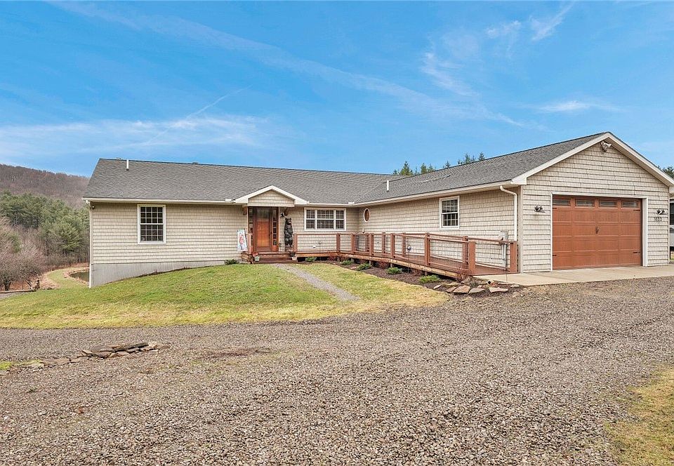PARADISE FOUND! MOVE OUT TO THE COUNTRY AND ENJOY THIS SPECTACULAR 5 BEDROOM, 2-1/2 BATH RANCH STYLE HOME ON 122 OPEN AND WOODED ACRES. THE SPACIOUS, OPEN CONCEPT LIVING OFFERS A KITCHEN WITH COUNTER BAR SEATING AND A FORMAL DINING AREA. YOU CAN STEP OUTSIDE FROM HERE TO THE COVERED DECK. THE LIVING ROOM BOASTS A STONE FIREPLACE AND OVERLOOKS THE BACK ONE ACRE STOCKED POND. THE PRIMARY SUITE OFFERS TWO WALK-IN CLOSETS, PLUS AND ENSUITE BATHROOM. THE OTHER SIDE OF THE HOUSE FEATURES TWO MORE BEDROOMS AND A SECOND BATHROOM. THERE IS A CONVENIENT HALF BATH AND LAUNDRY ON THIS LEVEL. THE LOWER, WALK OUT LEVEL PROVIDES A SECOND KITCHEN, DINING AREA, LIVING ROOM WITH A WOODSTOVE AND AN OVERSIZED FAMILY ROOM. TWO ADDITIONAL BEDROOMS AND A THIRD BATH ARE ON THIS LEVEL. THERE IS AN EXTERIOR PATIO AS WELL. PARK THE CARS IN THE ATTACHED GARAGE. THE HIGH CEILINGS ACCENTUATE THE SPACIOUSNESS OF BOTH LEVELS OF THIS HOME. THE GENERATOR AND POOL TABLE STAY AND SOME FURNITURE ITEMS ARE NEGOTIABLE. THE SQUARE FOOTAGE IINCLUDES 50% OF THE FINISHED WALK OUT BASEMENT. WHETHER YOU WORK OR SCHOOL FROM HOME, ENJOY ENTERTAINING YOUR FAMILY AND FRIENDS; THIS FABULOUS PROPERTY IS IDEAL.