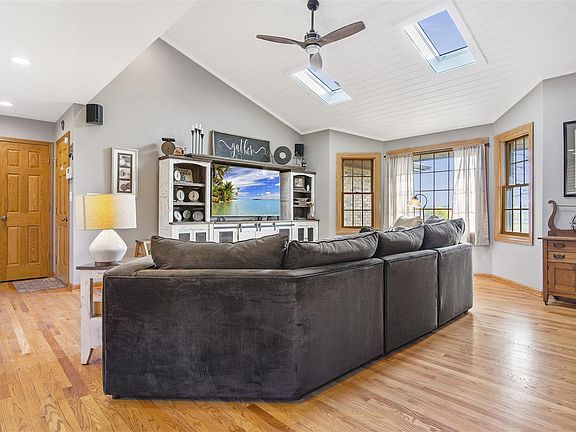 Unbelievable ranch home in Highland Hills of Genoa! 2.27 acres with 60x30 partially heated outbuilding! Sprawling lot with mature trees, welcoming front porch, deck, patio with gazebo and fenced backyard with newer pool and new pool heater! Step inside to find hardwood floors through most of the home, vaulted ceilings with skylights and tons of natural light. Huge family room with floor-to-ceiling stone multi-sided gas log fireplace, updated gourmet eat-in kitchen with hickory cabinets, quartz countertops and stainless steel appliance, plus island with breakfast bar. Spacious enclosed porch and large office area. Master suite with private bath. 2nd bedroom and updated hall bath. Offering even more living space is the full finished walkout basement with rec room and 3rd bedroom (both with new carpet) plus a full bath. High efficiency furnace and newer water heater. This home truly has it all! Room to roam and an unbeatable price make this a MUST SEE!