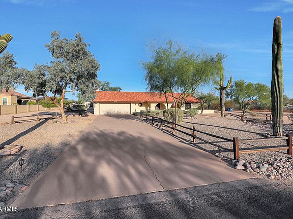 Welcome home to this incredible one acre plus horse property in Cave Creek. This beautiful estate features plenty of room for all of your toys and features 3 bedrooms, 2.75 bath, attached 2 car garage, Covered RV Storage and 2 additional detached storage Sheds for quads, tools, and toys. Inside the home you'll enjoy this open kitchen remodeled with beautiful new cabinets/granite counters and SS appliances. The open concept great room features vaulted and beamed ceilings and is a perfect gathering place for family and friends. Huge primary bedroom that has a sperate sitting area and fireplace along with a gorgeous remodeled bath and large closet. Step through the French doors and outside you will enjoy a covered patio, two gazebos, a newly remodeled pebblesheen pool and cool decking, new pavers along with an outdoor kitchen, and putting green. This horse property also features 2 horse stalls and an arena with both areas being plumbed with water. Bonus detached bunk house for kids, grandkids, or guests features privacy and is cooled by a wall unit ac and is not included in square footage or bedroom count. Must see and walk this property to appreciate all the improvements and features.