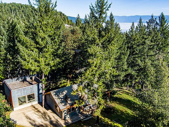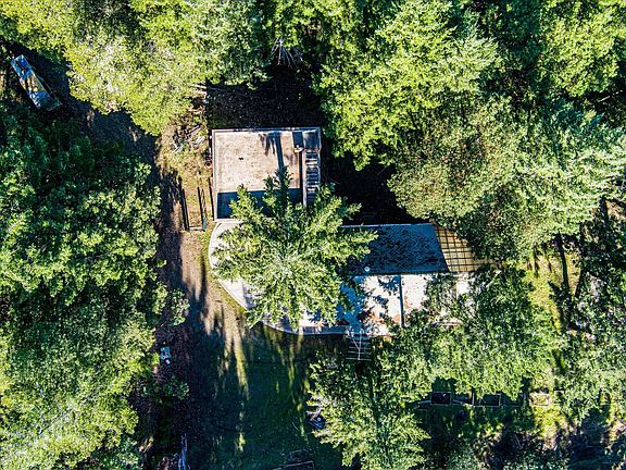 Additionally, the property boasts two finished outbuildings that can serve as a studio or extra sleeping lofts. Practical features include a cement bear bin and available propane hookups. The expansive garage is complemented by a full basement. Relax in the hot tub while taking in stunning views of Jewett Rock, all amidst beautiful madrone and fir trees that grace the landscape.