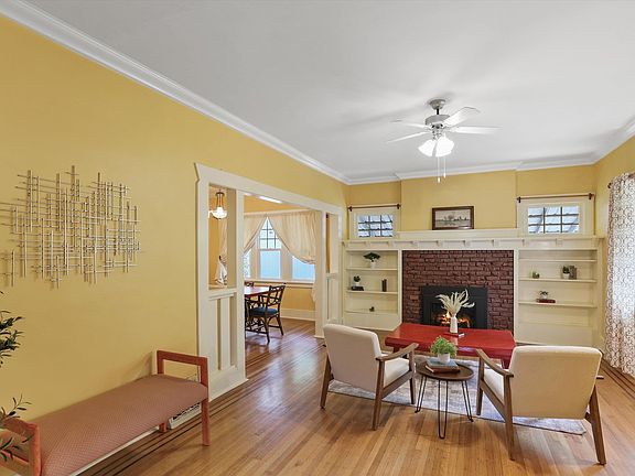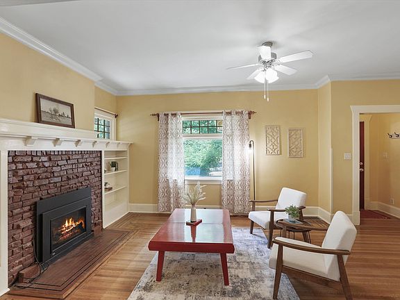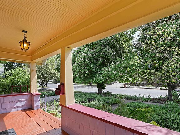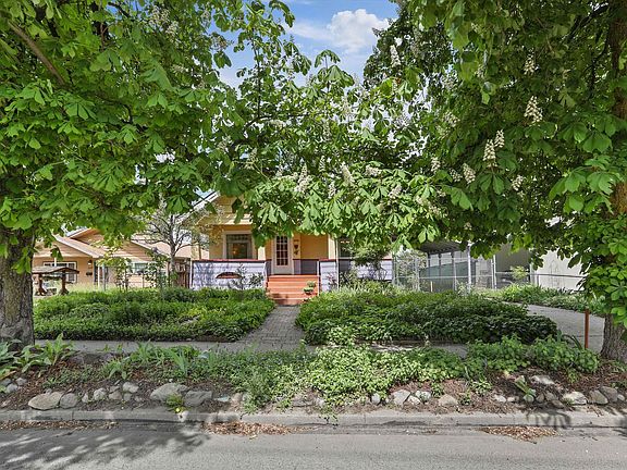 Beautifully maintained craftsman with lush gardens! Come see this cheerful, whimsical, storybook home. Bursting with charm, this home features natural oak floors w/ artisan inlays, two main floor bedrooms, pretty living room w/ fireplace, office space, & formal dining. Light & bright kitchen with custom birch & glasss cabinet w/slide-out lowers, gas range, and beautiful Canadian oak countertops. Cheerful sun porch flows out to deck and gardens. Spacious upstairs primary w/walk-in closet. Finished bsmt w/wood stove, family room, and half bath, two non-egress rooms, laundry & storage. New deck overlooks fully fenced, floral/edible garden—perfect for gardening, play, or pets. Gated carport adds security. Ideal location on Spokane's popular south hill. Easy access to shops, Downtown, Univ Dist, bus line, excellent schools and multiple beautiful parks. This unique home blends creativity, comfort, & convenience—truly one of a kind!