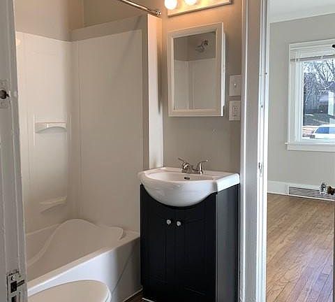 Come check out this spacious 3 bedroom, 1 bathroom home! Fully refurbished with fresh paint, brand new windows, beautiful hardwood floors and a large basement with washer and dryer hookups. Schedule a tour today!! $30 app fee per adult; one months' rent deposit due within 48 hours of application approval; tenant responsible for all utilities; pets allowed with a $150 non refundable pet fee and $25/mo pet rent per pet. We do not accept section 8. This home is professionally managed by VineBrook Homes; 24 hour emergency maintenance provided.