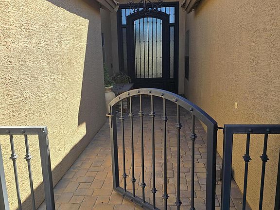 Amazing house in east Mesa. This 4 bed, 2.5 bath, 3000 sq ft home is pride of ownership! Once you drive up you can see why this house is different. Beautiful front yard landscaping with synthetic grass, iron front gate and extra pavers off of the driveway. Entry door is a custom 11ft iron door. Inside is full of custom upgrades. Master bathroom has been fully updated complete with walk in shower and huge closet. Entire home has oversized marble type tile or grey hardwood flooring. 7 different areas have had new custom cabinets installed and granite countertops. Iron work continues with matching pantry door, oversized chandelier and accent gating. RV gate is fully remote controlled with a quick and quite entry/access. Backyard is stunning complete with 2 spanning pergolas, built in BBQ, 10 person heated above ground spa, putting green, pool, outdoor fireplace, Bluetooth sound system and visually stunning lighting make the yard a must see!! Hurry before it is gone...