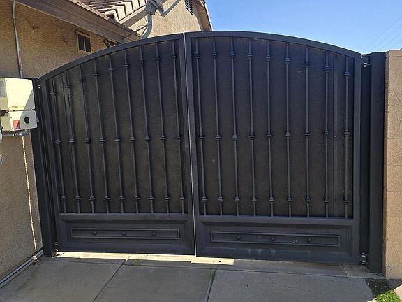 Outdoor fireplaceRv gateOversized chandelierWalk in showerBuilt in bbqIron front gateBluetooth sound system