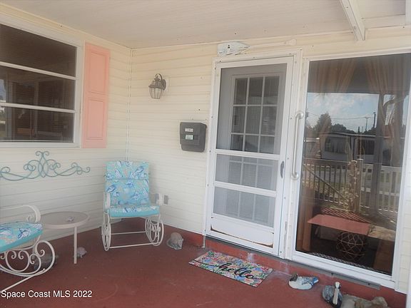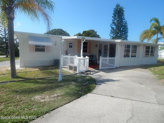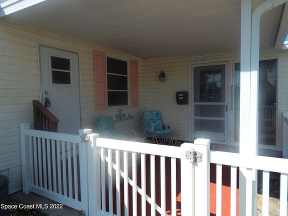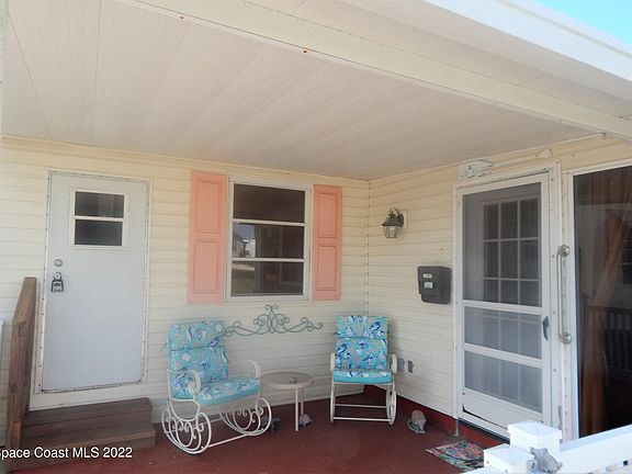 1 Bed 1 and 1/2 bath updated home has stainless steel appliances, laminate flooring, a family room with tiled floors, a dining room, and the added convenience of 2 driveways, one with carport and outside patio. Located in Palm Bay Estates, a 55 and over waterfront community. 1/2 bath has an added stackable washer and dryer. Enjoy the community pool or activities in the clubhouse, which also features a full kitchen. Take a walk or drive your golf cart over to the water and have a picnic. Fish or just relax, and enjoy the views of the Indian River. The HOA dues include lawn, landscaping, basic cable, internet, picnic area pool, clubhouse, community boat dock, and boat ramp. Boat storage and RV parking for a fee and depending on availability. Make Palm Bay Estates your new home.