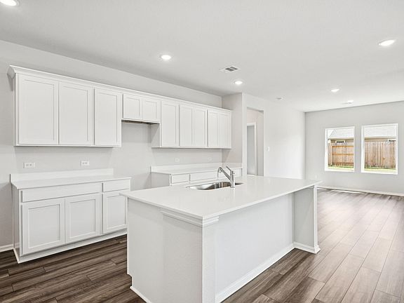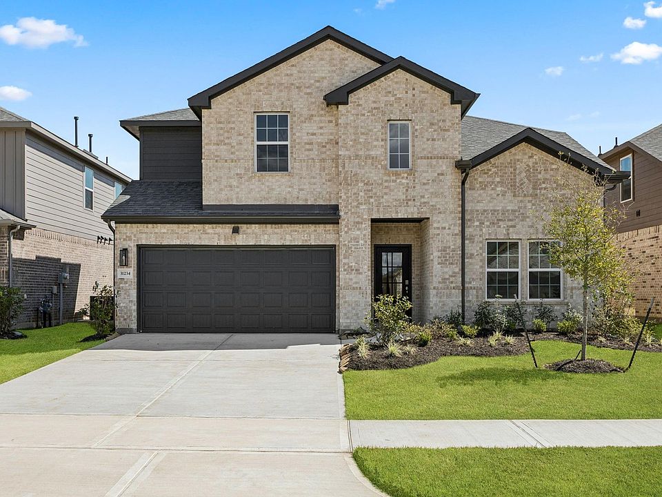 Enzo Plan – LAGOON LIVING – Lagoon life is coming to Huffman ISD! Discover Saint Tropez, a peaceful community that blends suburban charm and rural tranquility. Enjoy a luxurious lifestyle with scenic lagoon views and amenities designed for wellness, relaxation, and everyday comfort. Megatel Homes’ Enzo plan is a 2-story, 2,583 square foot home featuring 3 spacious bedrooms, 2.5 bathrooms, a flex room, and a 2-car garage. This layout includes an extra room for work or quiet time, and a seamless connection between the kitchen, dining, and living areas for easy everyday living. The main-level primary suite offers a peaceful retreat with a spacious walk-in closet and private ensuite bath. Situated on a 50 ft lot, this home is available with elevation A, showcasing a distinct and stylish exterior design.