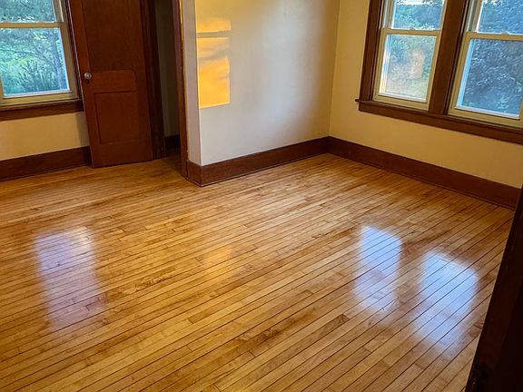 Newly refinished hardwood floors in all 2nd floor bedrooms. Carpeted floors in first floor bedroom. New LVP flooring in kitchen, tile in bathroom. Large dining room with beautiful oak french doors and arched doorway into a separate living room, family room and office on first floor are all carpeted. Office is complete with desk, filing cabinets and storage cabinets included.