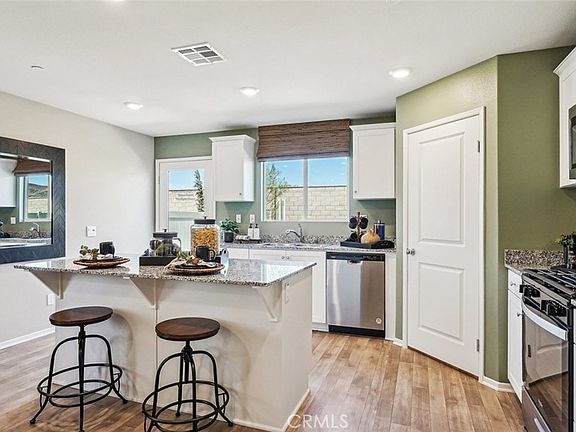 NEW CONSTRUCTION in WINCHESTER... This 1352 Square Foot California Spanish Home located on a Large Corner Lot, is perfect for a young family or empty nesters with a perfect home offering (3) bedrooms and (2) full bathrooms. It is a nice open floorplan with a bedroom in the front of the home that opens up into the great room which flows into the dining room and kitchen. The kitchen will come with granite countertops, crisp white shaker style cabinetry and built-in stainless steel appliances with solid surface flooring throughout the home except in the bedrooms, there will be carpet. There is a (2) car attached garage with access from inside the home as smart home technology at your fingertips and it is fully landscaped and has an irrigation system in the front yard. This home will be to move in by the end of Early August 2025 and we can't wait to welcome your client's home.