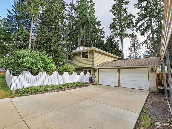 Welcome to your personal garden of Eden! Located in a quiet Bothell neighborhood within the highly sought-after Northshore School District, this beautifully updated home sits on a large lot featuring two gated gardens, an orchard with mature fruit-bearing trees and bushes, and a spacious backyard shop. Inside, you'll find custom wood finishes throughout, including hardwood floors, oak cabinets, doors, trim, and cedar ceiling inlays. The home has been freshly painted and includes a brand-new driveway, modern LVP flooring just installed, central A/C, and a huge covered RV parking area. This property offers a perfect blend of craftsmanship, space, and privacy in a peaceful, convenient location.