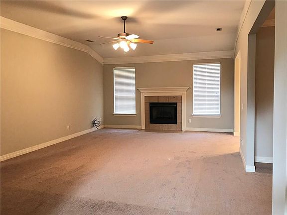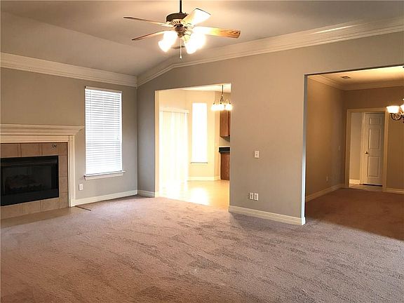 3 bedrooms, 2 baths, 2 car garage, living room has tall ceilings, gas-log fireplace, kitchen has bay patio door that opens to patio. Living room has trey ceilings, gas-log fireplace - full privacy fence.