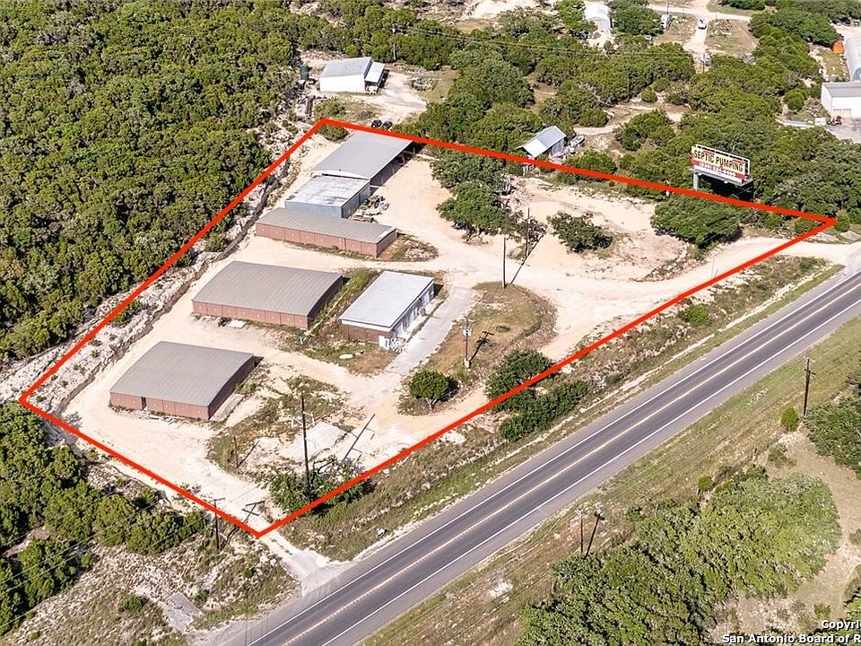 Prime Mixed-Use Investment! This unique property combines residential and commercial income streams with a small home, 11 RV spaces, and 36 storage units. Three RV spots sit beneath a massive metal carport, part of which is enclosed to include a small residence, an additional RV hookup, and space for storage or parking. Current rental income includes the home at $800/month, RV spaces ranging from $550-650/month all bills paid, storage units at $85/month, and a two-room shop leased for $1,100/month to a cabinet maker. The property is well-equipped with utility connections, multiple electric services including 3-phase service, and three septic tank systems. Zoned both commercial and residential, this peaceful property with hill country views and private water offers excellent flexibility for investors or owner-operators. Please allow 4 hours notice for showings.