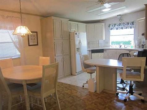 See this well-priced and well-maintained Jacobsen model 2 bedroom 2 bath home located in the Adult Waterfront Community of Fox Run where you will find affordable retirement living. You will love the modern open-concept living/dining room. The kitchen has a nice breakfast bar for you to enjoy any meal. The spacious master bedroom features a walk-in closet and the attached master bath has lots of cabinets in the sink/vanity area. There is a separate shower. Your washer and dryer are located in the nice storage area just off the carport for your convenience. A/C unit is new 2012 and roof was replaced in 2000. Some furniture is included. The easy-care flooring throughout the home offers low maintenance so you can be out enjoying yourself. Sit in your enclosed lanai and take in the country-like view from your backyard. The amenities of Fox Run include two pools, one is solar-heated, shuffleboard courts, a scenic boardwalk along the canal that gets you to Lake Harris in minutes, a marina and park, and RV storage. The Bay Tree executive golf course is nearby. Brokered And Advertised By: REAL LIVING ALL SOLUTIONS RE Listing Agent: MARY KATZER