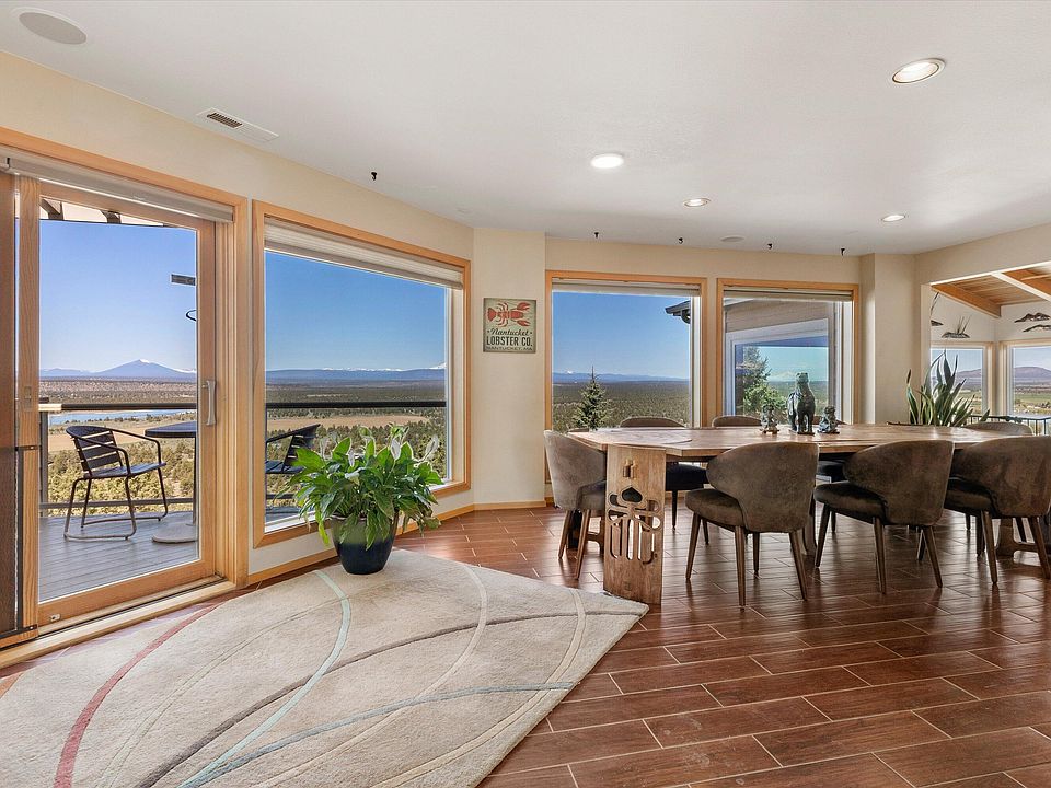 Stunning hilltop estate with 360-degree unobstructed views on top of Cinder Butte! See the Oregon Cascade Range, Buttes, Craters and Smith Rock all from this 3.53-acre property. Enjoy beautiful sunrises and sunsets across green fields, canyons, ponds and vistas in this grand 5,239 sf contemporary home boasting 5 bedrooms and 4 1/2 baths, a loft office and bonus rooms on three levels. The spacious upper-level owner's suite has built-in wardrobes and cabinets and a fireplace, luxurious bath and a bed that rotates 360 degrees. The scenery from every room including the hallway is breathtaking! This must-see property features main floor living, plus a second lower-level entrance to a 3rd ensuite, two bedrooms, kitchenette/laundry, bathroom and family room. New carpeting on every level. Walk from a fenced yard to the flagstone patio for stargazing by the fire after sunset. Make the best memories on the West deck where glass panels maximize Mountain views.