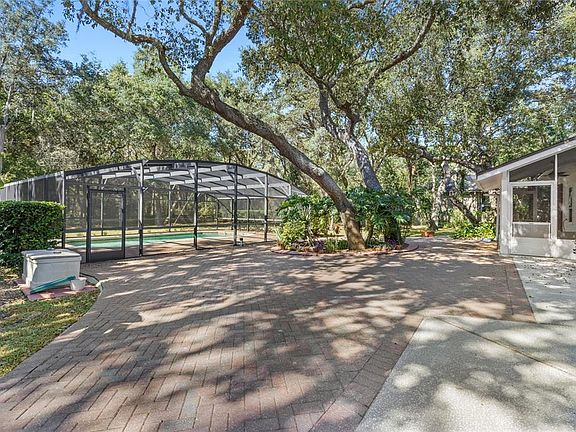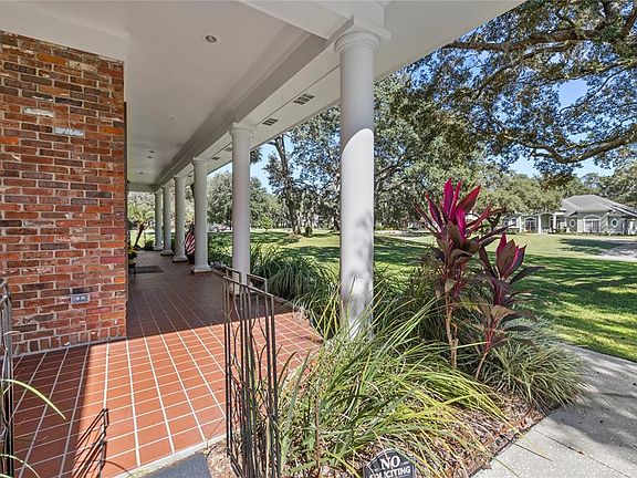 Breakfast barNew roofSpacious lotsScreened-in pool and patioMature oak treesLarge front porchTree-lined setting