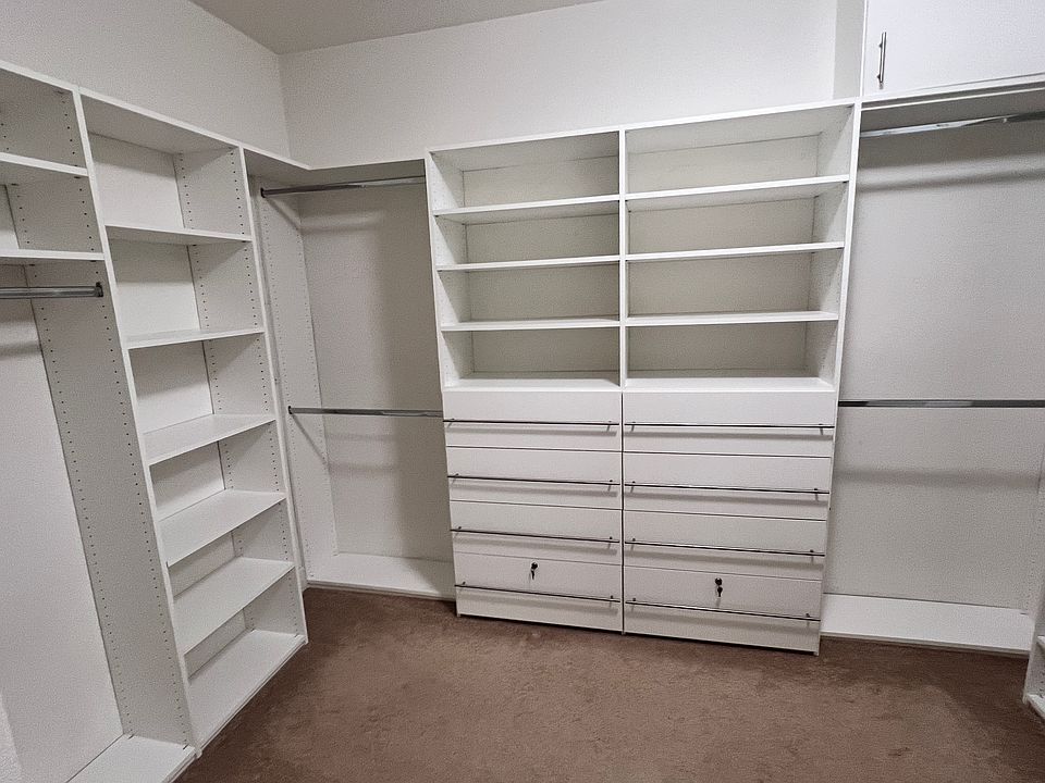 Custom closets in all rooms - Closet World custom closet in Master Bedroom walk-in closet, Container Store Elfa custom closets in all other rooms. Includes cabinet in the second floor for books and school supplies. Laundry includes plenty of cabinets for linen.
