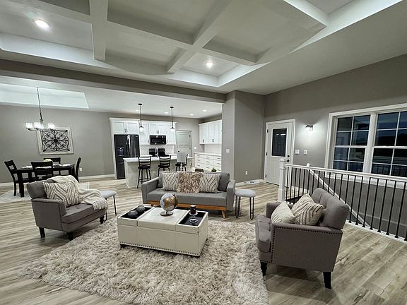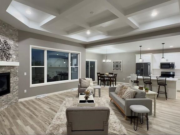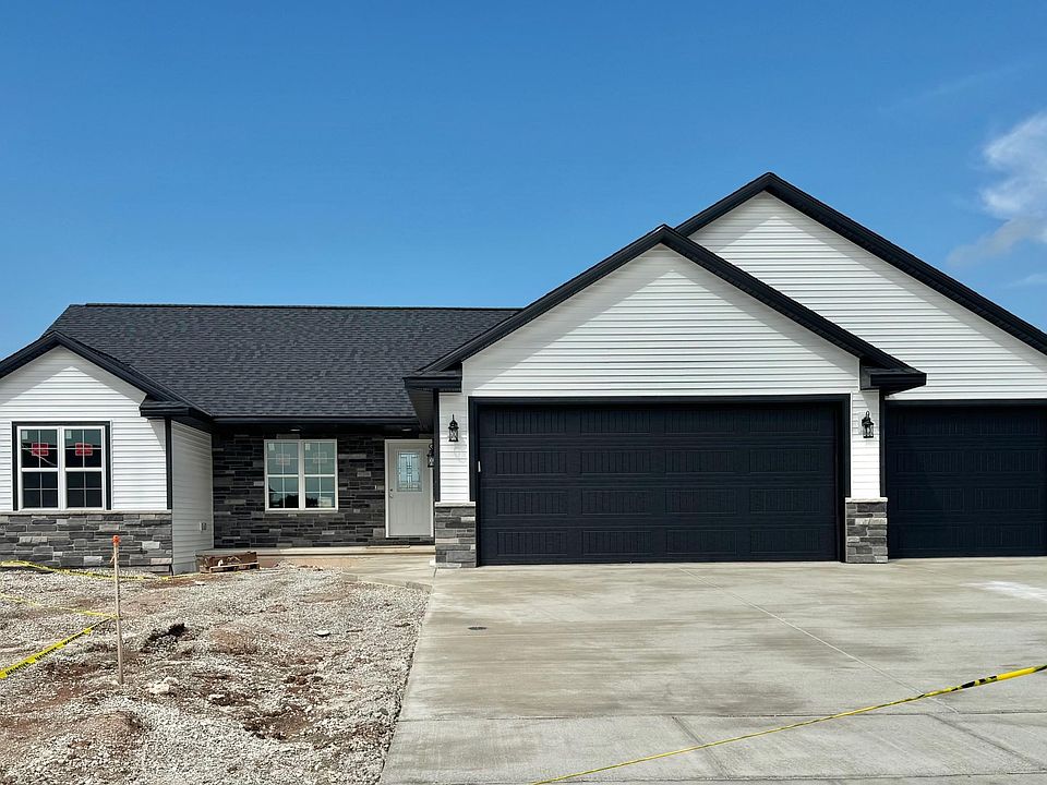 A must see! Quality built new construction boasting: amazing open concept 3 bdrms 2 full baths, 3 car attached garage with floor drain, great room with 10-11 ft tall crawford ceiling, stunning all stacked stone fireplace. Kitchen dinette offers 9-10 ft tall trey ceiling, all painted white maple cabinetry with walk in food pantry, beautiful quartz counter top with range, refrigerator, microwave and dishwasher included. Open stair to lower level with egress window and stubbed in for a future bath. Split bedroom design with master suite offering walk in closet & master bath. Covered front porch, 1st floor laundry, AC included. All black stainless steel kitchen appliances included. Convenient location. Listing Agent is affiliated with Builder/Seller Entity.