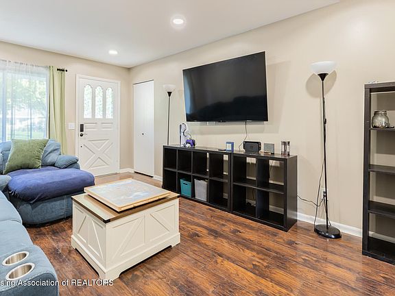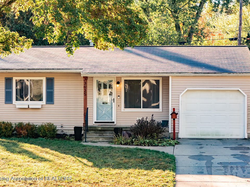 This inviting ranch offers stylish updates and comfortable living throughout! Step into a bright living room with recessed lighting and a charming shiplap accent wall that adds character and warmth. The dining area opens through sliding glass doors to the back deck, creating a seamless indoor-outdoor flow. The kitchen shines with stainless steel appliances, a chic tile backsplash, quartz countertops, and plenty of cabinet space. Two spacious bedrooms and an updated full bathroom with a tiled shower complete the main level. Downstairs, you'll find new carpet in the finished basement - perfect for a cozy family room, home gym, or rec area—complete with an additional half bath for convenience. Outside, enjoy a fully fenced backyard with new paver patio space ideal for dining or entertaining plus an attached garage for easy everyday living.