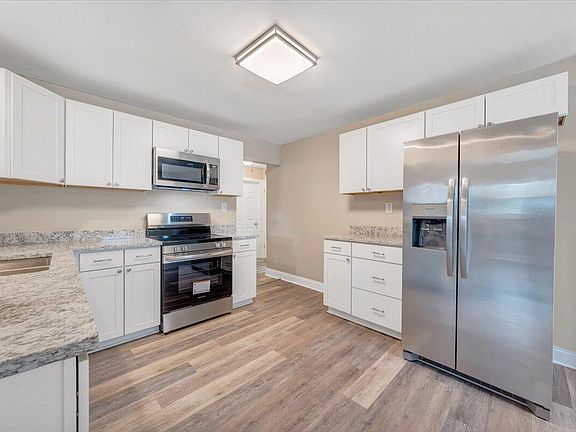 Completely renovated 4-bed, 2-bath ranch with a large open floor plan perfect for entertaining and everyday living. Step inside to find brand new LVP flooring throughout and a fully updated kitchen with sleek stainless steel appliances. A brand new HVAC system ensures comfort in every season. The primary suite boasts a beautifully updated bath complete with a smart TV for added luxury. The spacious lower-level family room provides plenty of space for gatherings, walks out to a covered patio, and includes ample storage. Relax or entertain on the large brand new deck overlooking the fenced backyard, ideal for pets, play, or hosting friends. A detached garage with a covered breezeway offers protection from the elements and convenient access. Come see this move-in-ready beauty today!