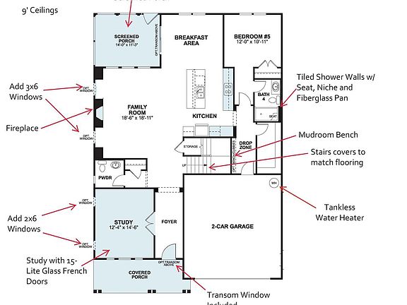 Blair E Slab Space -Ready Dec/Jan Gorgeous 5 bed, 4.5 bath on .15 of an acre with over 3300 plus sq ft. This amazing floor plan offers gourmet kitchen with gas cooktop, double ovens, oversized island and huge walk in pantry. 1st floor guest suite w/ full bath, study and screened porch! 2nd floor features spacious loft, owners suite with tile shower, vessel tub and dual vanities. Must see. Model home available to tour. The Friendship schools (Elementary, Middle & High) are located adjacent to this beautiful community.