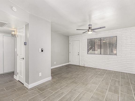 Beautiful 12 x 24 concrete tile floors throughout. Dual pane windows. Updated bathroom with tub and tile shower surround. The kitchen has beautiful quartz countertops, designer cabinets, Stainless Steel appliances, granite under-mount sink, and a stainless steel refrigerator. Large bedrooms with plenty of closet space. Designer multi-tone paint throughout. WiFi Smart Thermostat.