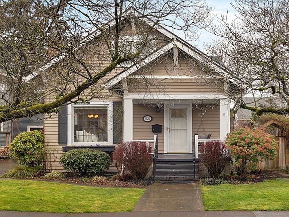 Crafted in 1922, this charming home has been lovingly cared for by the current owner since 1979. Enjoy the balance of original details and modern conveniences. The living room boasts a wood fireplace insert and the hardwood floors flow seamlessly to the dining room with classic built-ins. You'll love the vaulted ceilings upstairs. A 1112 sqft basement & detached garage are ready for your hobbies with immense storage. The fenced yard is perfect for entertaining & just wait until you see it bloom! [Home Energy Score = 1. HES Report at https://rpt.greenbuildingregistry.com/hes/OR10209939]