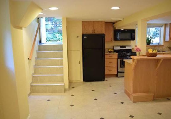 This is not your typical basement studio it's spacious, light-filled, and beautifully designed. Large windows let in an abundance of natural light, bouncing off the light-colored hardwood floors to create an open, airy feel.