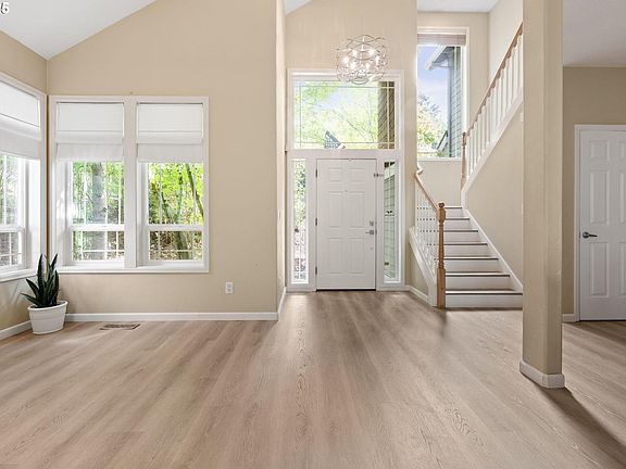 Perched in a serene setting, this 4-bed, 2.5-bath beauty feels like a modern treehouse retreat. Soaring windows frame lush, green views, while natural light spills into every corner. The open floor plan flows with ease, and a versatile flex room is ready for your yoga mat, art studio, or cozy reading nook or extra bedroom. Step onto the new deck and you’re surrounded by treetops—peaceful, private, and just far enough from the bustle to feel like your own hidden escape. It’s tranquility, with all the comforts of home.This beauty also comes with a new roof and new hvac! [Home Energy Score = 5. HES Report at https://rpt.greenbuildingregistry.com/hes/OR10241173]