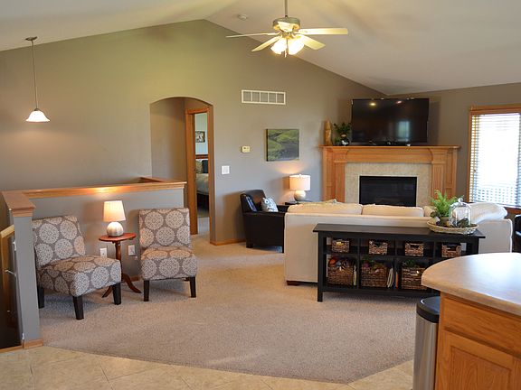 Spacious, open concept walkout ranch in SW Ankeny! Over 2500 square feet of finish in this 4 bedroom, 3 bath ranch. Welcoming living room with vaulted ceilings and fireplace, open kitchen and large dining area. 2 BRs up with 2 full baths- including master bedroom with adjoining bath and walk in closet. LL has additional 2 bedrooms, full bath, storage and family room with custom built-in bar- great for your entertaining needs! LL walks out to patio and large, fenced yard. Easy access to shopping in Prairie Trail, DSM Downtown, I-35/80. Move-in ready for a new family!