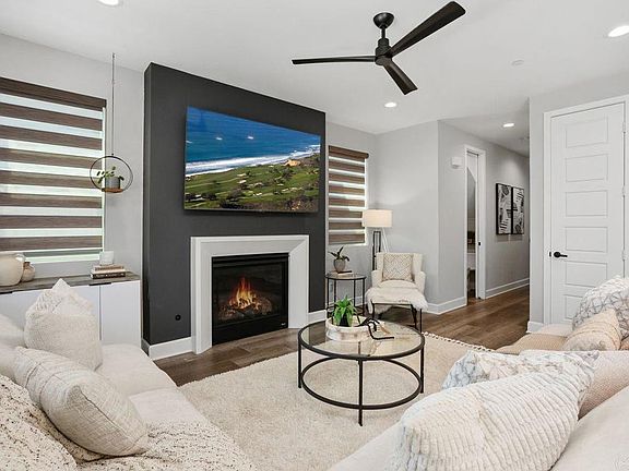 Modern Luxury Meets Coastal Serenity in Carlsbad’s Preserve Community Nestled within the sought-after Preserve Community of Carlsbad, just minutes from Carlsbad State Beach and within walking distance to premier shopping and dining, this stunning residence offers the perfect balance of modern luxury and natural tranquility. Step into a chef-inspired kitchen featuring sleek white lacquer-style cabinetry, custom stone Dekton countertops, a full tile backsplash, and an expansive center island with a single basin sink and pull-down faucet. A custom-built dry bar with wine refrigerator adds a sophisticated touch, seamlessly connecting the dining area and family room with a cozy fireplace. Wide plank wood-style flooring flows throughout the home, creating a warm and cohesive design. Upstairs, a versatile loft with sliding glass doors opens to a balcony, complemented by elegant French shutters. The primary suite is a private retreat with serene mountain views, a private balcony, an expansive walk-in shower, dual vanities, and a custom walk-in closet. Secondary bedrooms are thoughtfully positioned for privacy, each featuring French shutters. One includes a luxury pull-down Murphy bed, offering flexible use of space. The upstairs laundry room comes complete with a deep utility sink for added convenience. The backyard oasis invites relaxation and entertainment with a covered patio lounge, dining area, and lush landscaping. As part of The Preserve, residents enjoy resort-style amenities, including a beach-entry pool with lap lanes, spa, BBQ pavilion, outdoor fireplace lounge, fitness center, gated dog park, playgrounds, scenic parks, and hiking trails—surrounded by 156 acres of protected open space along Quarry Creek. Paired with top-rated schools, this home presents the ultimate Southern California lifestyle.