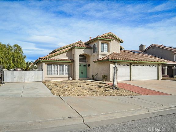 Beautiful West Palmdale pool home featuring 4 bedroom 3 and bathrooms near shopping, schools and freeway.  Enter this home into the living room/dinning room with vaulted ceilings.  Large kitchen that opens up to the family room with a fireplace.  Downstairs bedroom and bathroom.  Upstairs you have two nice size rooms, hall bathroom.  Master Bedroom has a beautiful fireplace and balcony that overlooks the backyard.  Master Bathroom is spacious.  Beautiful backyard with built in pool and spa.  Attached three car garage.  Large RV Parking Space
