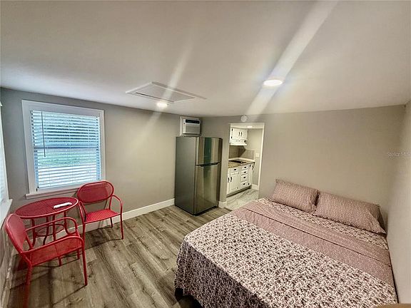 Be the first to live in this newly built efficiency studio located in a quiet single-family home. This modern space features a compact kitchen equipped with a two-burner stovetop, mini-sink, refrigerator, and storage cabinets. The unit includes a private full bathroom, a comfortable full-size bed, and dedicated air conditioning for maximum comfort. Perfect for those who are seeking privacy, convenience, and a clean, modern living space. Move-in ready.