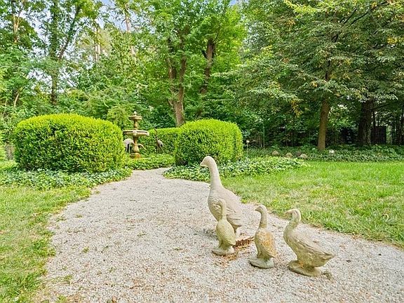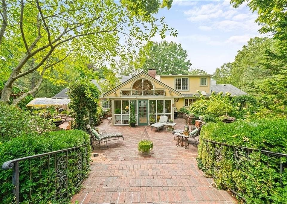 of an English country estate. Set on over a half-acre, the backyard is a true sanctuary with lush gardens, multiple seating
