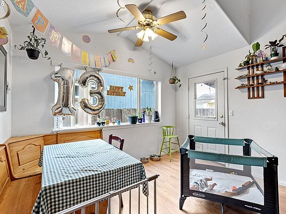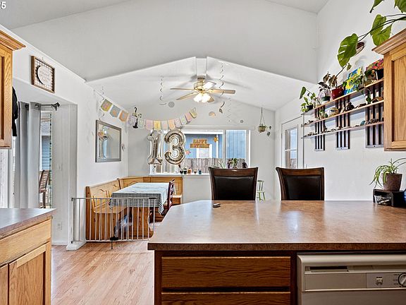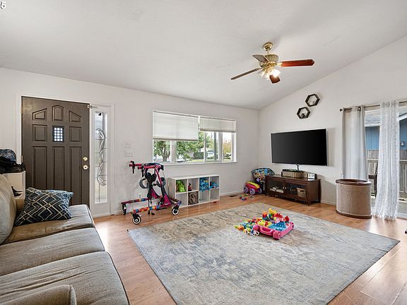 This three bedroom 2 bathroom home in a sought after established Springfield neighborhood is waiting for you! Picture having your morning coffee on the wrap around front porch, or sitting outside on evenings, enjoying the peaceful scenery and views of the hills. Kitchen, dining room, and living room have vaulted ceilings and offer plenty of natural light. Primary bedroom also offers vaulted ceilings and an oversized jetted soaking tub. Step out back with a covered porch with plenty of space to garden, play, or turn into your own backyard paradise. The possibilities are endless!