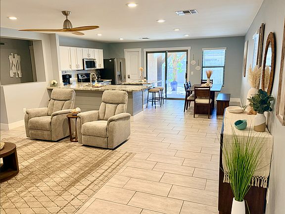 Step inside the open-concept living area with cozy seating, warm natural light, and stylish decor. The modern kitchen features granite countertops, stainless steel appliances, and a large island great for cooking, dining, or entertaining.