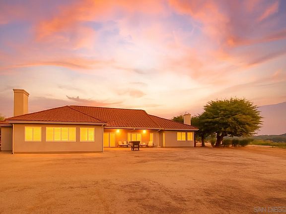 Embrace breathtaking, wide-ranging vistas from your own private sanctuary. Perched atop a serene mesa and enveloped by more than two acres of usable land, this exceptional single-story stunner offers an unparalleled sense of space, privacy, and natural beauty. Designed for both intimate gatherings and grand entertaining, the home welcomes you with a formal entry, warm hardwood floors, and soaring vaulted ceilings that introduce the expansive living and dining areas adorned with plantation shutters. Sun-filled and beautifully proportioned, the layout flows effortlessly into a relaxed family room anchored by an elegant floor-to-ceiling stone fireplace. The adjacent chef’s kitchen is an entertainer’s dream, showcasing custom cabinetry, generous quartz countertops, gas cooking, double ovens, bar seating, a second oversized island, and a charming breakfast nook—all opening to a covered patio ideal for savoring dramatic panoramic sunsets. The luxurious primary suite serves as a tranquil retreat, featuring a second stone fireplace and two custom-designed walk-in closets. Its spa-inspired ensuite bath enhances the experience with dual sinks, a deep soaking tub, a walk-in shower, and abundant counter space. A well-appointed laundry room with a dedicated sink and abundant custom storage ensures everyday living remains flawlessly maintained and thoughtfully organized. Completing this extraordinary offering is a six-car garage and an expansive driveway with ample room for RV parking, a pool, an ADU, guests, and off-road vehicles. A rare combination of elegance, functionality, and sweeping natural beauty, this remarkable property elevates everyday living into something truly exceptional.
