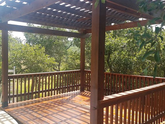Stunning 3/2/2 home, of almost 2,800 sf, situated on 2 acres has a backdrop of treed TX Hill Country & a charming nature pond. Well thoughtout & beautifully designed split floor plan features flexible dining, formal/informal, gourmet island kitchen, office, large family room w/stone fireplace. Spacious Master Suite w/outside access to terrace & pool. Master bath features double vanity, whirlpool & walk-in shower. Gorgeous pool area complimented w/custom pergola! Immaculately maintained and simply beautiful!