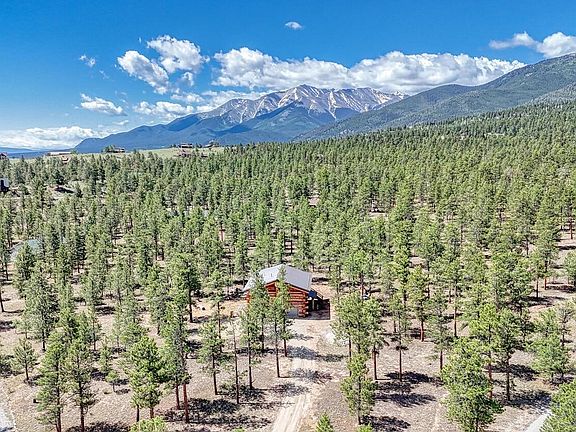 Large price improvement! Enjoy authentic mountain living in this brand new handcrafted rustic log home on 3.8 spacious acres! Located in the desirable Game Trail neighborhood just off the main paved road, enjoy the peace and quiet of being tucked in the pine trees while being only minutes from everything Buena Vista has to offer. 1,757 sq ft, 3 bedrooms, 2 bathrooms. Enjoy amazing rustic touches throughout this home including a masonry fireplace heater with pizza oven, handcrafted kitchen with vintage stove, vintage replica dishwasher / refrigerator, live edge slab counter, and so much more! Primary bedroom suite features deck access, walk-in closet, and vintage ensuite bath with clawfoot tub. Large oversized 2 car garage is heated and provides room to park a pickup truck. Covered rough-hewn deck provides plenty of space to entertain or relax and enjoy the mountains. Hot tub connections are in place.Too many features to list, check this one out in person!