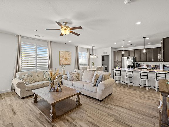 Welcome to this well-designed 3-bedroom, 2-bath home featuring a desirable split-wing floor plan and thoughtful upgrades throughout. Plantation shutters add a touch of style and function, while the open living area makes everyday living and entertaining seamless. The kitchen is highlighted by granite countertops, a breakfast bar, and a cozy nook, all open to the living room for easy entertaining. An indoor laundry room adds convenience, and the two guest bedrooms share a full bath, providing comfortable accommodations. The primary suite is a true highlight, offering a large walk-in closet, dual sinks, and a step-in shower. Outdoors, you'll enjoy a covered patio and a grassy yard—perfect for kids, pets, or gatherings. A 2-car attached garage rounds out the property with plenty of storage and parking. Located in NE Tulare within the highly desired Liberty school district, this home is ready for its next owners to make lasting memories.