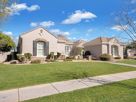 Absolutely stunning luxury home with detached casita on almost 1/2 acre in the popular Higley Groves neighborhood of Morrison Ranch! You will fall in love from the moment you walk through the door! Every detail of this home has been meticulously designed with the finest finishes! From the intricate molding to the beautiful wood floors, no expense was spared! Gourmet kitchen features floor to ceiling custom cabinetry, marble countertops, built-in refrigerator, gas cooktop, pebble ice machine & spacious pantry!