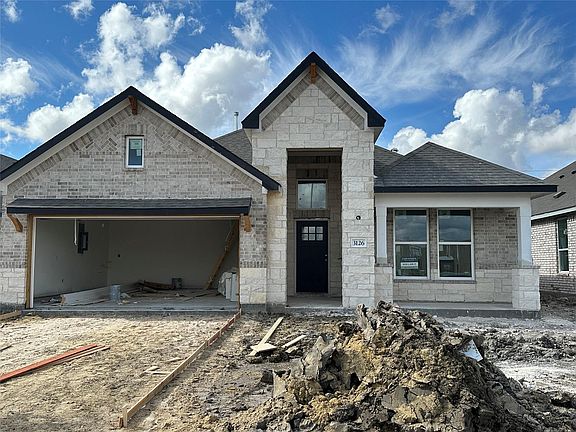 Welcome to the NEW Aspire at Ashland master-planned community in Angleton, TX! Built by Saratoga Homes, this stunning one-story Palmer floor plan offers 4 bedrooms, 2 bathrooms, a dedicated office, and 1,860 sq ft of thoughtful design. Featuring a beautiful stone-and-brick elevation and an inviting front porch, this home welcomes you with a large entryway, tall ceilings, and an airy front foyer that fills the space with natural light. The open-concept layout includes a formal dining area, bright white cabinetry, and clean modern finishes throughout. Enjoy added privacy with no back neighbors and the convenience of a quick move-in — this home can close before the end of the year!