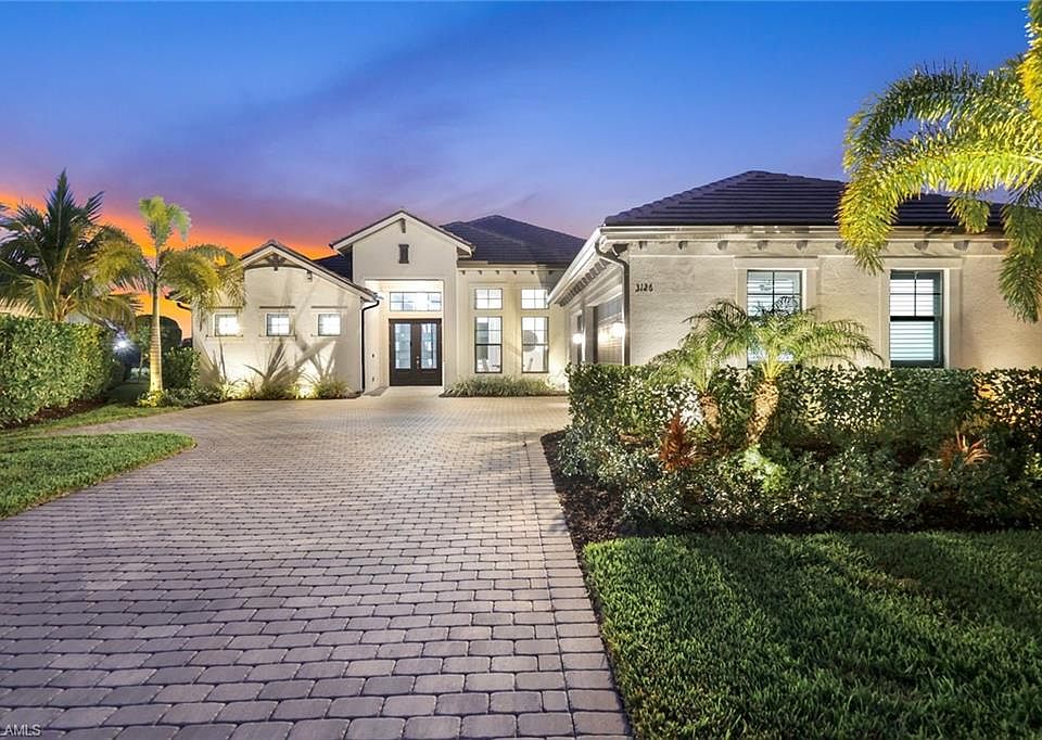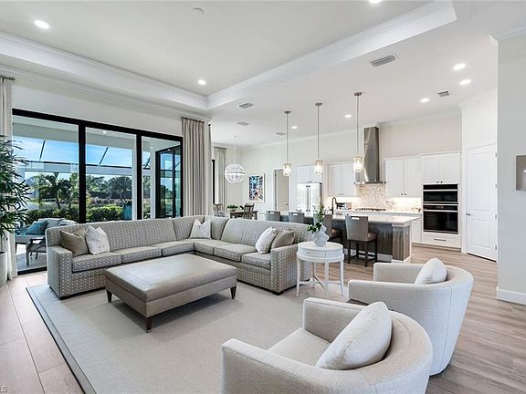 Sophisticated, serene, contemporary, and warm, this absolutely wonderful, 4 bedroom, 3 bath home in coveted Marsh Cove in Fiddler's Creek is now available to become your very own dream home! Splendid southern exposure offers the warm sun all day on the wonderfully upgraded pool and spa. The colonnade style picture screened lanai, overlooking a lake and expansive green space is walking distance from the brand new spectacular Fiddler's Creek private Golf Clubhouse and renovated golf course. Become one of the lucky few left with access to membership to this award winning golf club. Like to entertain? Imagine preparing for family and friends in this gourmet kitchen with stainless steel Monogram gas appliances, curated quartz counters and beautiful marble backsplash, oversized and custom painted island, formal and informal dining, outdoor kitchen and more. High end light fixtures with additional flush mounted LED lights throughout. Primary suite, situated away from guest wing, with access to pool and lanai offers the perfect spot to enjoy morning coffee. Primary bath features a large walk in shower and separate luxurious soaking tub. Marvelous light toned, wood like tile throughout, impact doors and windows, custom window treatments, motorized blackout shades in primary bedroom, custom closets, drop zone near laundry room, epoxy floored 3 car garage, plus upgraded fixtures and hardware. Fiddler's creek is a community like no other with amenities second to none, offering 2 resort pools, 2 restaurants, 54,000 sq foot club and spa, brand new fitness equipment, fitness classes 7 days a week, pickleball, bocce, tennis, and full calendar of social events year round. Private Beach Club and Marina memberships available. Minutes from the white sands of Marco Island and downtown Naples with it's abundance of restaurants and boutiques, this one is a must see!