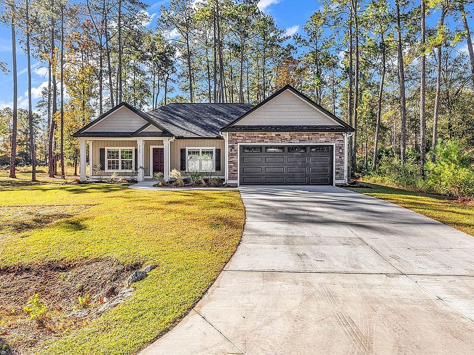 MOVE-IN READY!! Step into modern comfort on nearly three-quarters of an acre in this 2025-built Conway home. With 3 bedrooms, 2 baths, and 1,475 heated sq ft of thoughtfully designed living space, this home balances style and functionality seamlessly. Enjoy stainless steel appliances, granite countertops, white cabinetry, and a striking tile backsplash. LVP and tile flooring extend to throughout the home. Master bedroom offers crown molding, while the master bath includes double vanity, shower and garden tub and large walk-in closet. A back patio with sliding doors, with by mature trees for privacy and natural beauty. This home offers all the upgrades, gutters, blinds throughout, and irrigation system. Exterior is vertical vinyl siding with stone accents. Enjoy the freedom of no HOA, a large lot, and proximity to Conway schools, parks, shopping, and healthcare. Experience the perfect blend of convenience and modern living—schedule your showing today.