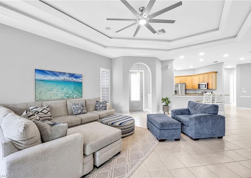 Unobstructed, Southern-Exposure Golf Course Views. Welcome home to 3126 Santorini Court, a luxury villa perfectly positioned along the only unobstructed view of the 5th fairway in Olde Cypress, one of North Naples’ most prestigious private golf communities. This 3-bedroom + den, 2-bath home offers an open, bright layout designed for both comfort and entertaining. Every detail has been meticulously cared for from new interior and exterior paint (including garage) to professionally cleaned tile floors, new lighting and ceiling fans, upgraded switches & outlets, faucets, toilets, and showerheads, hot water heater and new carpeting. The refreshed kitchen hardware and custom six-panel doors with premium fixtures give the home a cohesive, modern feel. Step outside to a southern-exposure lanai featuring a newly resurfaced gunite pool, new pool heater, pool pump, and pool filter, and tropical landscaping with fresh walkway lighting, the perfect backdrop for sunrise coffee or sunset cocktails overlooking the tranquil golf course. Olde Cypress residents enjoy resort-style amenities: a P.B. Dye–designed 18-hole championship golf course, Har-Tru tennis and pickleball, fitness center, bocce courts, putting green, and a stunning newly renovated clubhouse all with no dining minimums or member assessments. Golf membership is optional, making this one of Naples’ most flexible and desirable communities. Located just minutes from Naples’ beaches, dining, and shopping, this impeccably maintained villa offers unmatched value and views in the heart of North Naples. 3126 Santorini Court, where meticulous comfort meets the best of golf course living.