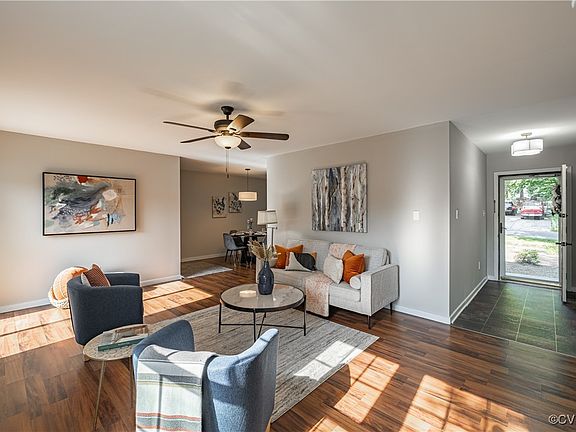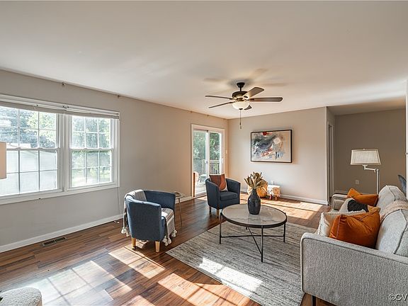 Full of charm and natural light, this move-in-ready ranch offers easy living on a spacious corner lot just 20 minutes from downtown Richmond, with quick access to Routes 76 and 288. Inside, you'll enjoy single-level living with fresh paint throughout and durable LVP flooring in the bright, sun-soaked living room. Sip your morning coffee on the charming front porch or entertain on the back deck. Located in the highly sought-after Evergreen Elementary, Swift Creek Middle, and Clover Hill High School district, this home is just 2 minutes from River City Sportsplex and the future site of The Lake, a world-class surf park with plans for restaurants, breweries, wineries, and an amphitheater. Convenient and comfortable, this home has everything you need right at your fingertips.