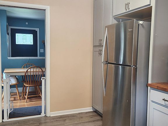 This all brick move-in ready 3 bedroom 2 full bath home has been nicely updated and maintained, just waiting for its new owner! Newly finished hardwood floors in a generous living room greet you as you walk in the front door. Dining area fits a table and chairs comfortably. Straight ahead is the completely redone kitchen featuring 42" upper cabinets for added storage and stainless appliances. Off the living room are 3 bedrooms, all with hardwood flooring and an updated full bath. Downstairs you will find a completely redone and dry basement including a full bath with a soaking tub and 2nd kitchen (gas line is there but no stove is currently hooked up). Partially finished laundry room with washer, dryer and sink along with storage area complete the basement. Outside you will find a deck right off the back door, a good sized, completely fenced yard and dog run, wooded along back of lot and backs up to the creek, but lot is set high and no flood insurance is required! The oversized 2.5 car garage is also brick, and the side drive gives extra off street parking. Shed for extra storage. Updates include the following: 2019 Kitchen completely gutted and redone, 2024 hardwood refinished in living room. 2019 main floor bath updated, 2022 basement gutted and redone, including a kitchenette and full bath. 2021 New windows, 2024 new trim and 2024 front landscaping. Roof approx. 2013. Tuckpointing approx. 2017, facia replaced, additional insulation in attic. Smart thermostat and Ring doorbell also included. Schedule your showing today before it's gone!