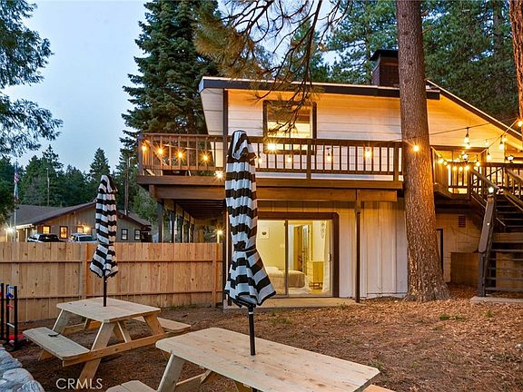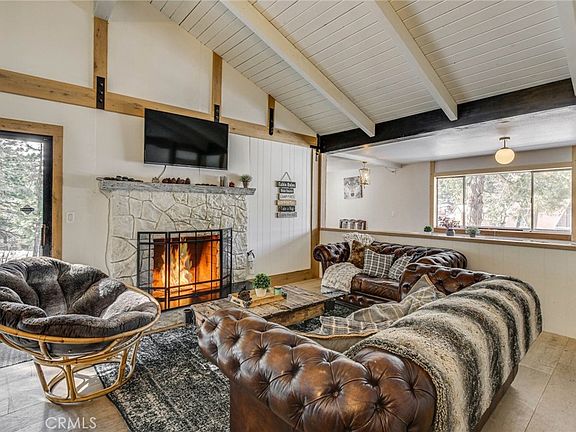 STUNNING MODERN FARMHOUSE RETREAT WITH COMMERCIAL ZONING ON HILLTOP BLVD. Welcome to this beautifully designed modern farmhouse nestled in the mountains—an ideal blend of luxury, comfort, and endless potential. Professionally decorated and thoughtfully laid out, this spacious home welcomes you through a functional mudroom into an expansive open-concept interior featuring multiple inviting sitting areas perfect for relaxing or entertaining. Zoned commercial and located directly on Hilltop Blvd (Hwy 18), this property offers incredible flexibility for residential, rental, or business use. It includes three separate level parking areas and holds an active short-term rental permit, streamlining the process for new owners interested in income opportunities. The home’s fully remodeled kitchen is a chef’s dream, equipped with high-end Wolf, Sub-Zero, and Viking appliances. Enjoy mountain living year-round with a stunning quartz fireplace, vaulted wood ceilings, and modern lighting fixtures that create a warm, upscale ambiance. Step out onto the wraparound deck on the second level, where you can take in views from every angle—day or night. The main floor features two spacious bedrooms, a walk-in closet, and a beautifully updated bathroom with a tub/shower combo. Downstairs, you’ll find three additional bedrooms, including a generous master suite with its own fireplace and a flexible den or secondary living area. Each room has direct exterior access, making the lower level perfect for a business setup, studio, or guest quarters. A large utility room with washer, dryer, and sink adds convenience. The oversized 2-car garage is currently transformed into a vibrant game room, adding even more lifestyle options to this versatile property. Perfectly located with quick access to Hwy 330, this home is conveniently situated between Lake Arrowhead and Big Bear, and just 10 minutes from Snow Valley Ski Resort. Whether you're looking for a private retreat, a turnkey rental, or a location to live and work, this mountain farmhouse is ready for you—just bring your suitcase and move right in!