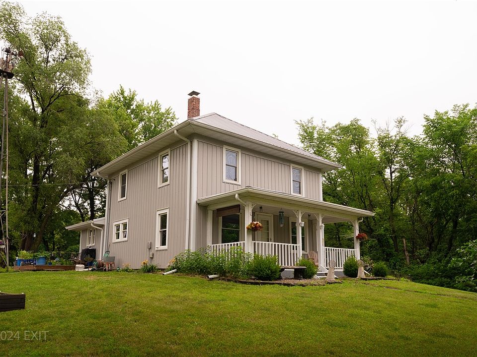 Tranquil, peaceful, and quiet are words to describe this beautiful 10+ acre Madison County acreage. The charm of a traditional Four-Square farmhouse with the luxury of a recently updated kitchen with large walk-in pantry and bathrooms, evenings spent sitting around the fire-pit, hiking or 4-wheeling on the wooded trails, shooting on your own firing range, and frequent native wildlife visitors to the yard, this is the perfect retreat from work. Fiber optic to the house and shop supply high speed internet when you need to connect with civilization. The 40x60 out building is anyone’s dream shop. It is spray foam insulated, heated, well lit, supplied with more than enough electricity, sitting on an extra thick concrete floor with floor drains, and a concrete approach, covered patio area, and apron. Three other out buildings include the 2-1/2 car garage, the older barn and clubhouse. The house features a maintenance-free exterior with replacement vinyl windows, steel siding and roof. The basement has had a total makeover by Midwest Basements for peace of mind. The basement walls are secure and include a vapor barrier, the perimeter is tiled, a new concrete floor, and includes the best sump pump system available. Septic system is new in 2024. This home is in the popular I35 School District and the bus stops at the driveway! Great location only minutes from I35 and about 20 minutes or less to Winterset, WDM or Indianola. Make an appointment to see this phenomenal property today!