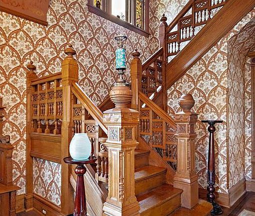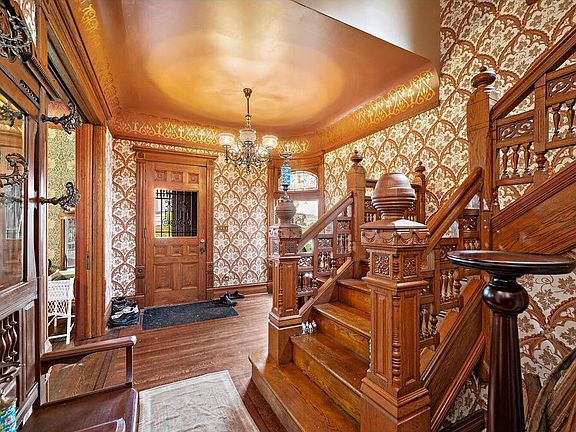First time available in 30+ years! Built for the family of JB Hudson Jewelers, the JB Hudson house is a designated National Register landmark built by master builder TP Healy. Double-paneled entrance doors, curved corner window, arch-top Moorish windows, redwood siding. Inside, you’ll find pocket doors, refinished inlaid floors, walls meticulously treated with custom, hand-print, William Morris & Adelphi wallpapers, hand-painted gold-leaf stenciling, & custom stained glass. Get ready to prep for opulent holiday gatherings in a deluxe kitchen featuring brushed marble heated floors, cherry cabinets, granite countertops, high-end German Miele appliances & Viking stovetop. Bathrooms have been tastefully updated w/period-appropriate finishes & heated floors. Also note the central air conditioning, a rare luxury in a house of this vintage! Private drive with electric car charging station. New roof, 200 amp elec, updated plumbing incl copper street service.