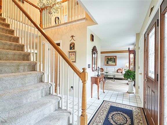 Nestled in the desirable Highland Chase development, this custom, one-owner Boggs-built Colonial features 4 spacious bedrooms, 3.5 baths, and 2,430 sq. ft. of above-grade living space, plus an additional 1,000 sq. ft. in the fully finished lower level. Step inside to a thoughtfully designed layout that’s perfect for both gatherings and everyday living. The main level showcases a formal dining room accented with wainscoting, crown molding, and new luxury vinyl flooring. Across the foyer, the formal living room opens through French doors into the inviting family room, highlighted by a cozy gas fireplace. The family room flows seamlessly into the eat-in kitchen, which features a walk-in pantry, Corian countertops, stainless steel appliances, and ample storage. A sunlit dining area provides access to the multi-level back deck and stamped concrete patio, overlooking a private backyard that backs up to woods and bike trails. Just steps away, you’ll find a convenient half bath, main-level laundry room, access to the 2-car attached garage, and a bright home office with skylights and direct access to the back deck. Upstairs, the spacious primary suite features vaulted ceilings and an en-suite bath, complete with a dual vanity, soaking tub, and stand-alone shower. Three additional bedrooms and a full bath—updated with new granite countertops and fresh flooring—complete the second level. The finished walk-out LL includes a large rec room with a second gas fireplace, a full bath, a storage/utility room, and access to the back patio. Updates include: Newer roof with transferable warranty for 50 years(2018), brand new carpet and luxury vinyl flooring (2025), New HVAC system with 10-year parts/labor warranty (Aug. 2025), and HWT with 6-year parts warranty (Aug. 2025). Don’t miss the opportunity to make this beautifully maintained, move-in-ready home your own—ideally located near shopping, dining, and entertainment.