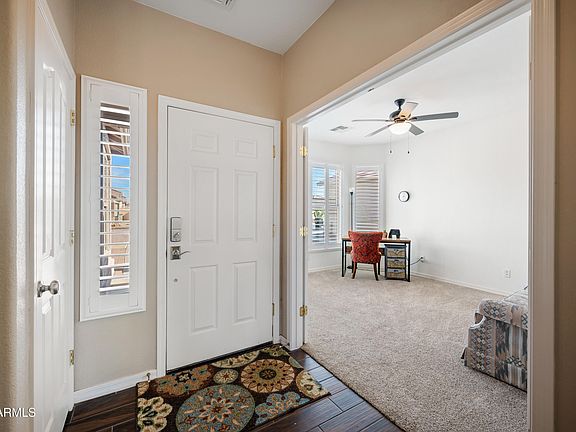 WOW! Discover this beautifully appointed retreat in Solera! Welcome guests in your courtyard and relax on your covered back patio. This open-layout home features a bright, spacious eat-in kitchen and an open, airy great room. The two bedrooms are split for maximum privacy, and the large den offers additional flex space for an office, guests, and more! A true vacation lifestyle is made easy with lock-and-leave desert landscaping surrounding the home. The Solera community center features heated pools, spa, pickleball and tennis courts, a fitness center, and more for your enjoyment. Spectacular South Chandler location offers proximity to dining, entertainment, shopping, casinos, healthcare centers, and more! Southern Chandler is very tranquil, offering a true sense of resort living.